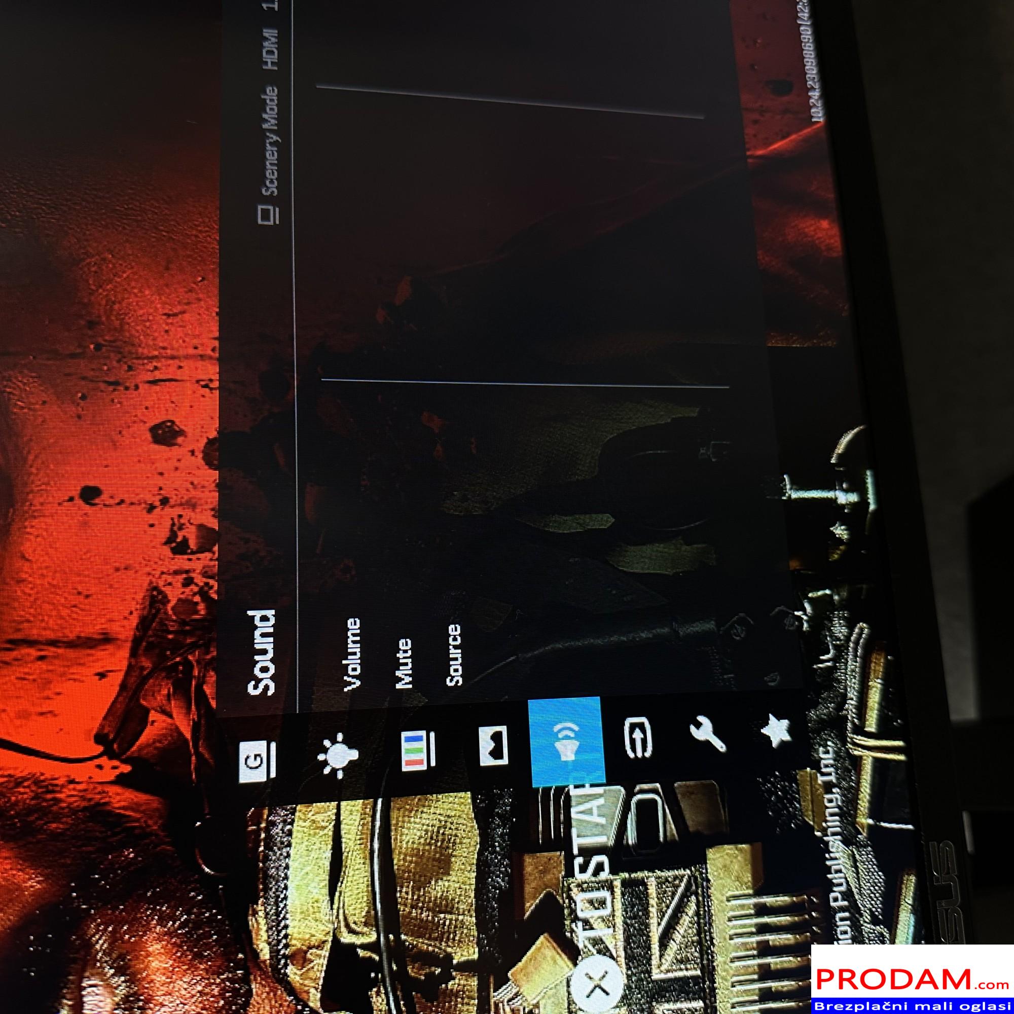 Prodam Gaming monitor ASUS VG279Q 27”, 144Hz. Ima nastavljiv naklon, višino, vrtenje in zasuk, vgrajene ima tudi zvočnike.