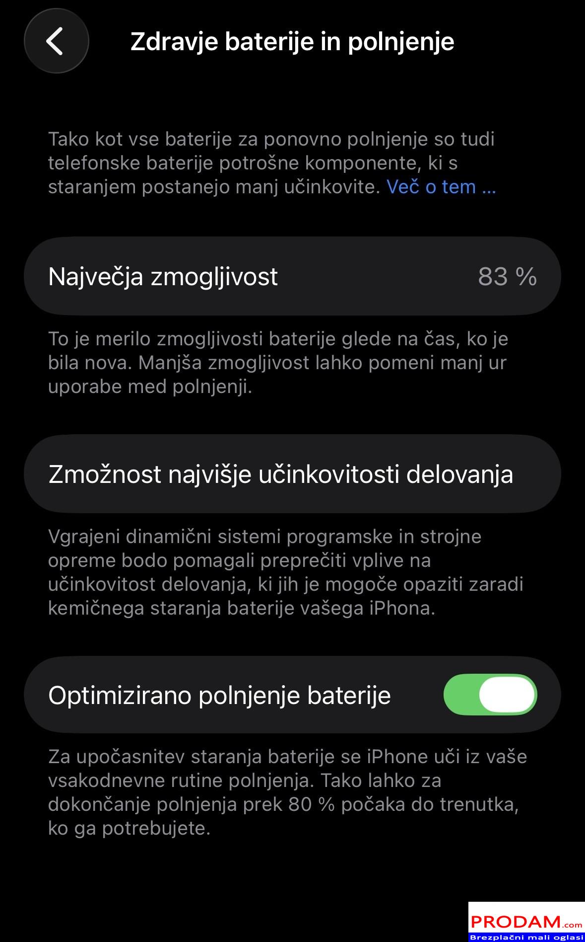 - Zdravje baterije: 83 %