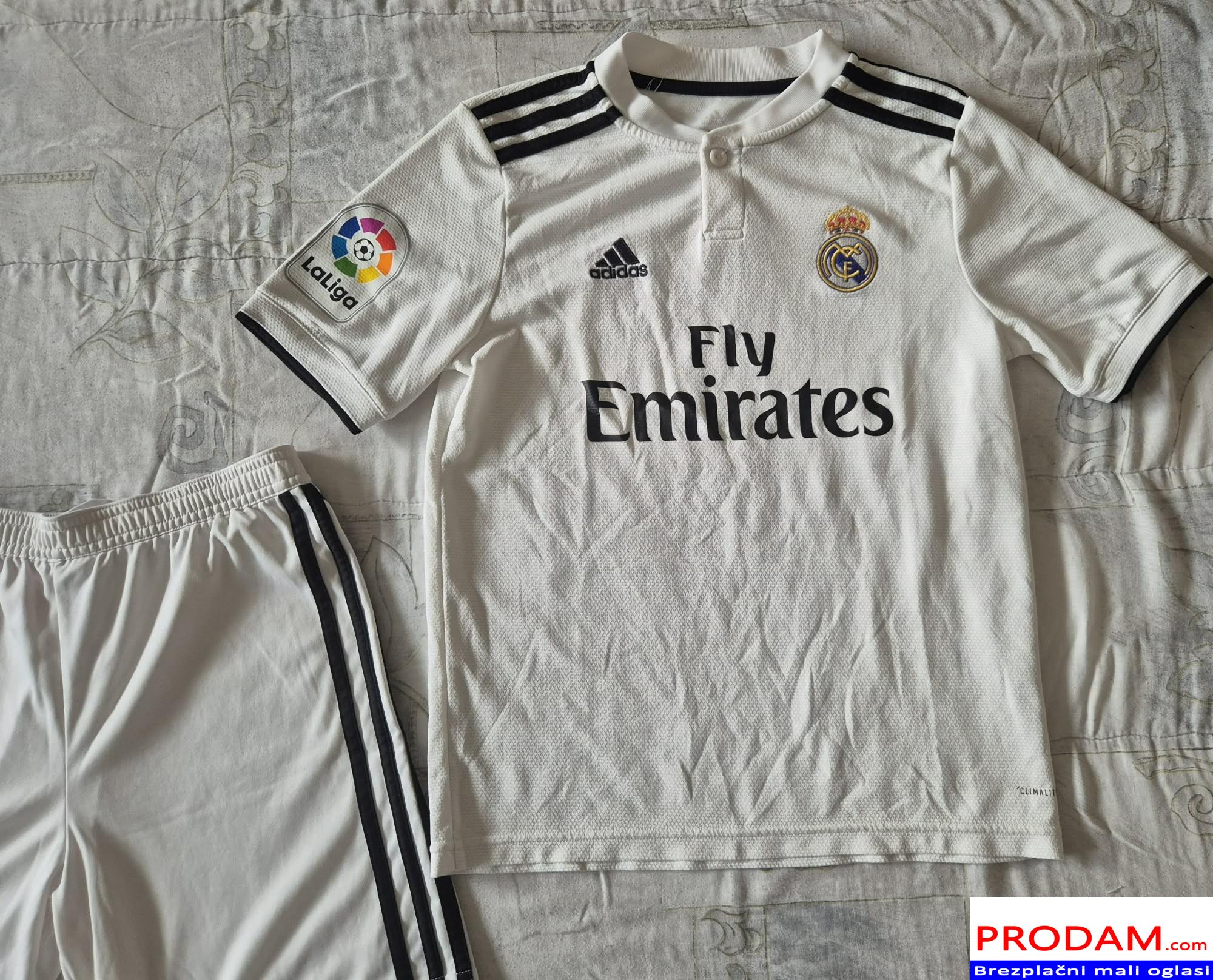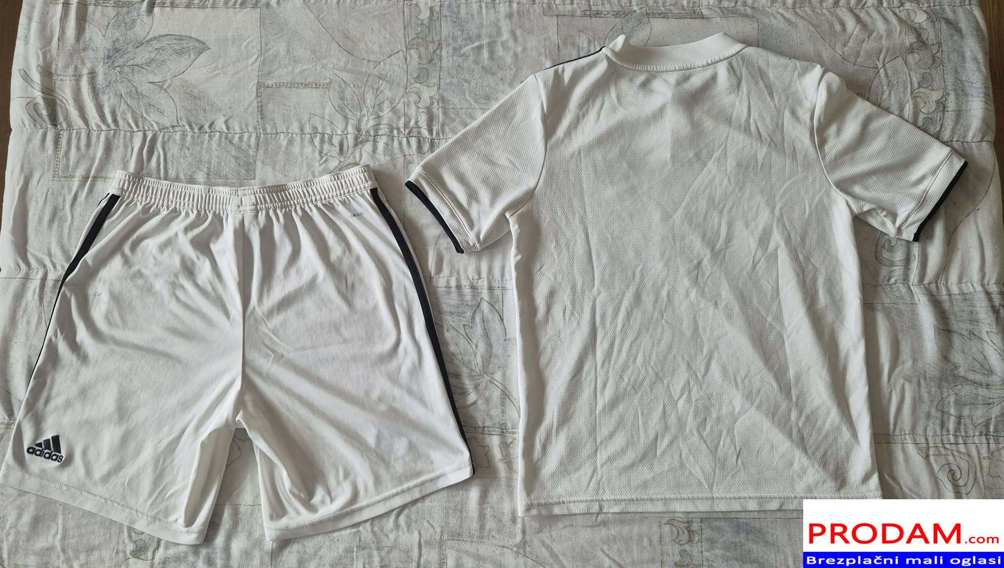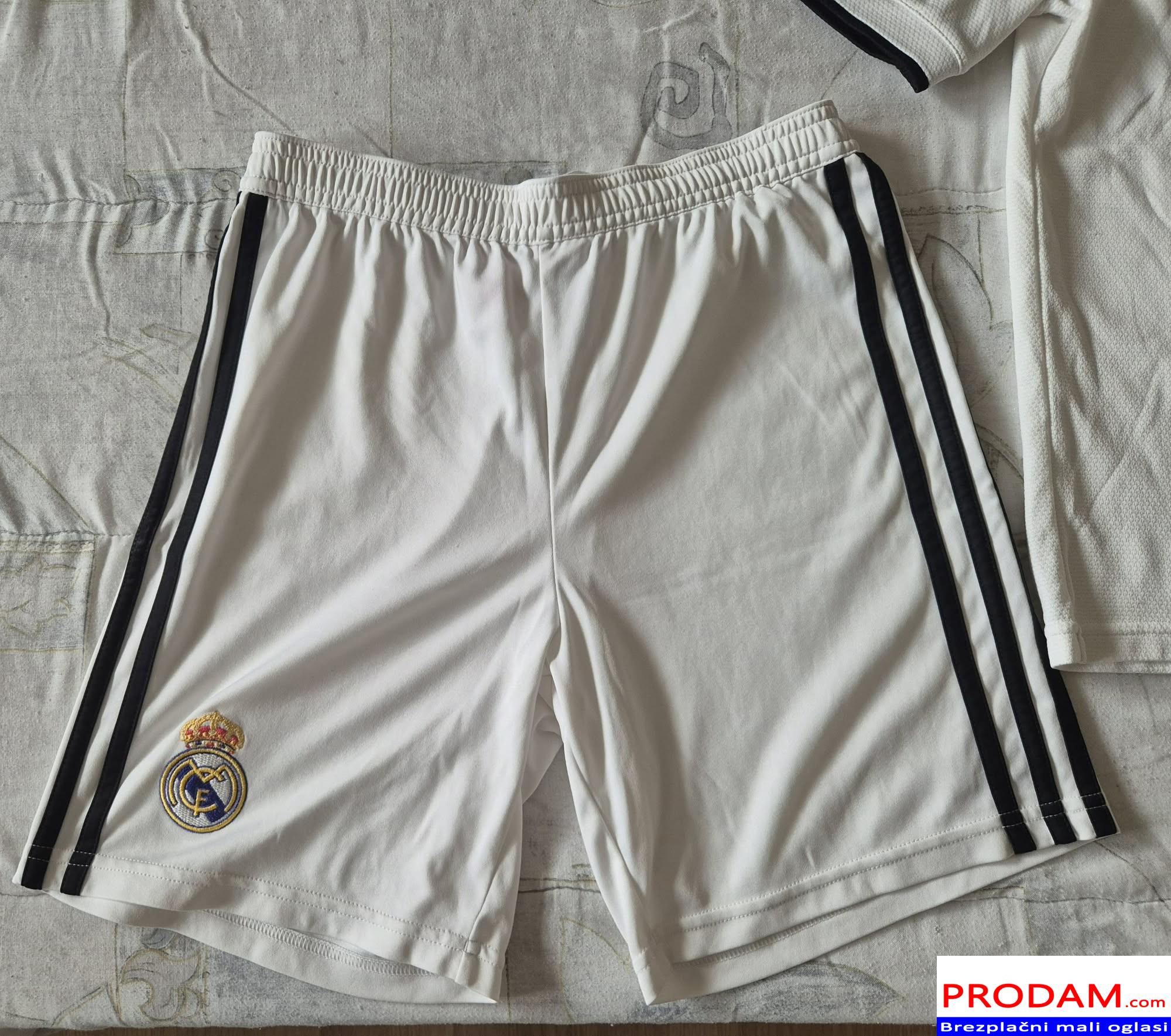 Prodam zelo dobro ohranjen original komplet Real Madrid, velikost 11/12let 152cm. Kupljen v Italiji v Adidas trgovini, cena novega je 90€. Na zadnji strani hlačk je čisto majhna odrgnina.