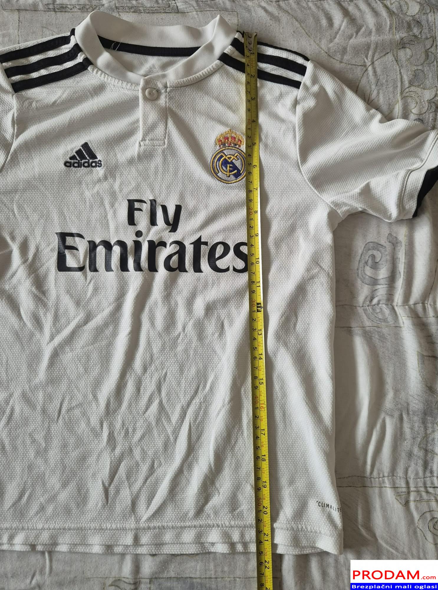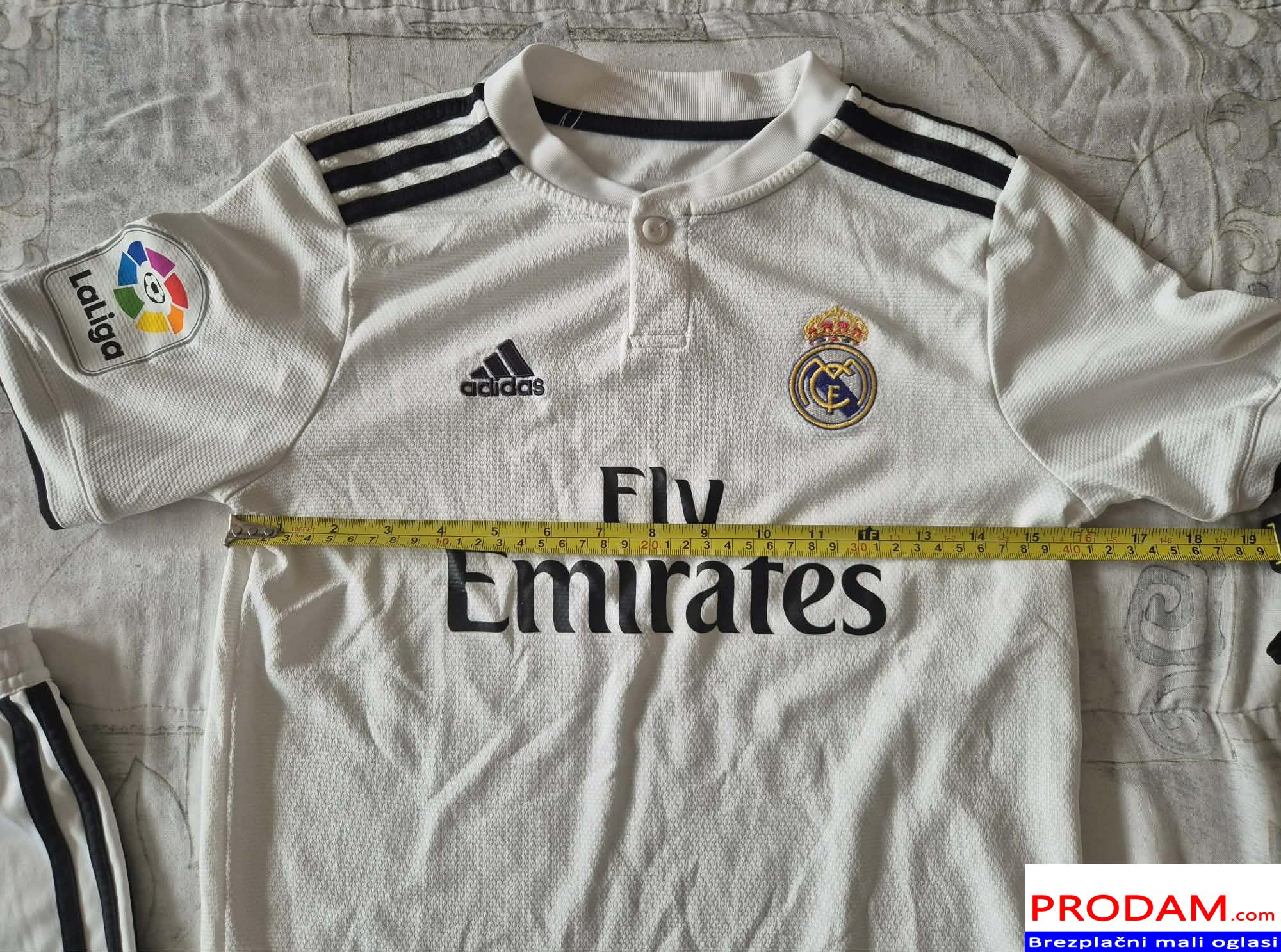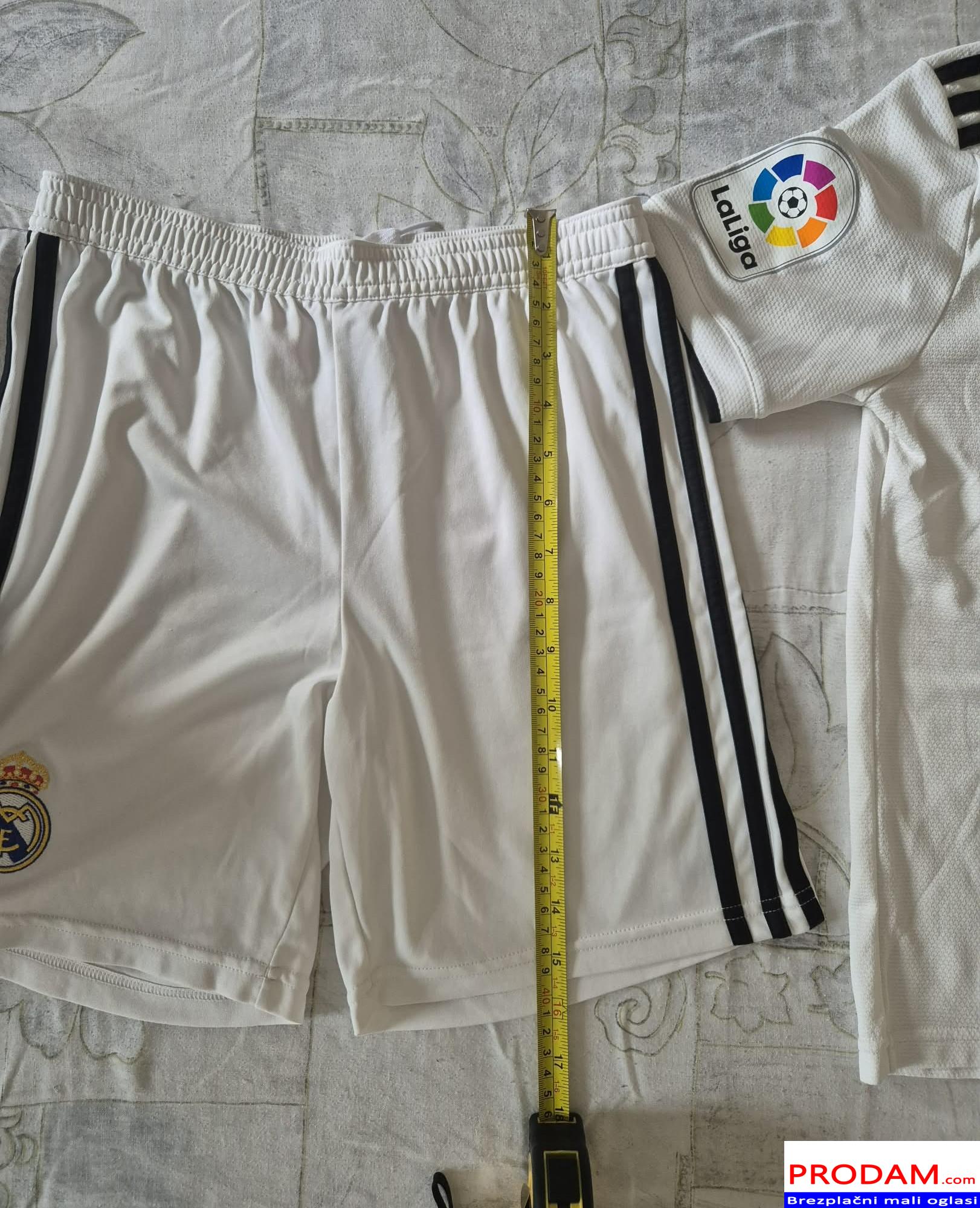 Prodam zelo dobro ohranjen original komplet Real Madrid, velikost 11/12let 152cm. Kupljen v Italiji v Adidas trgovini, cena novega je 90€. Na zadnji strani hlačk je čisto majhna odrgnina.