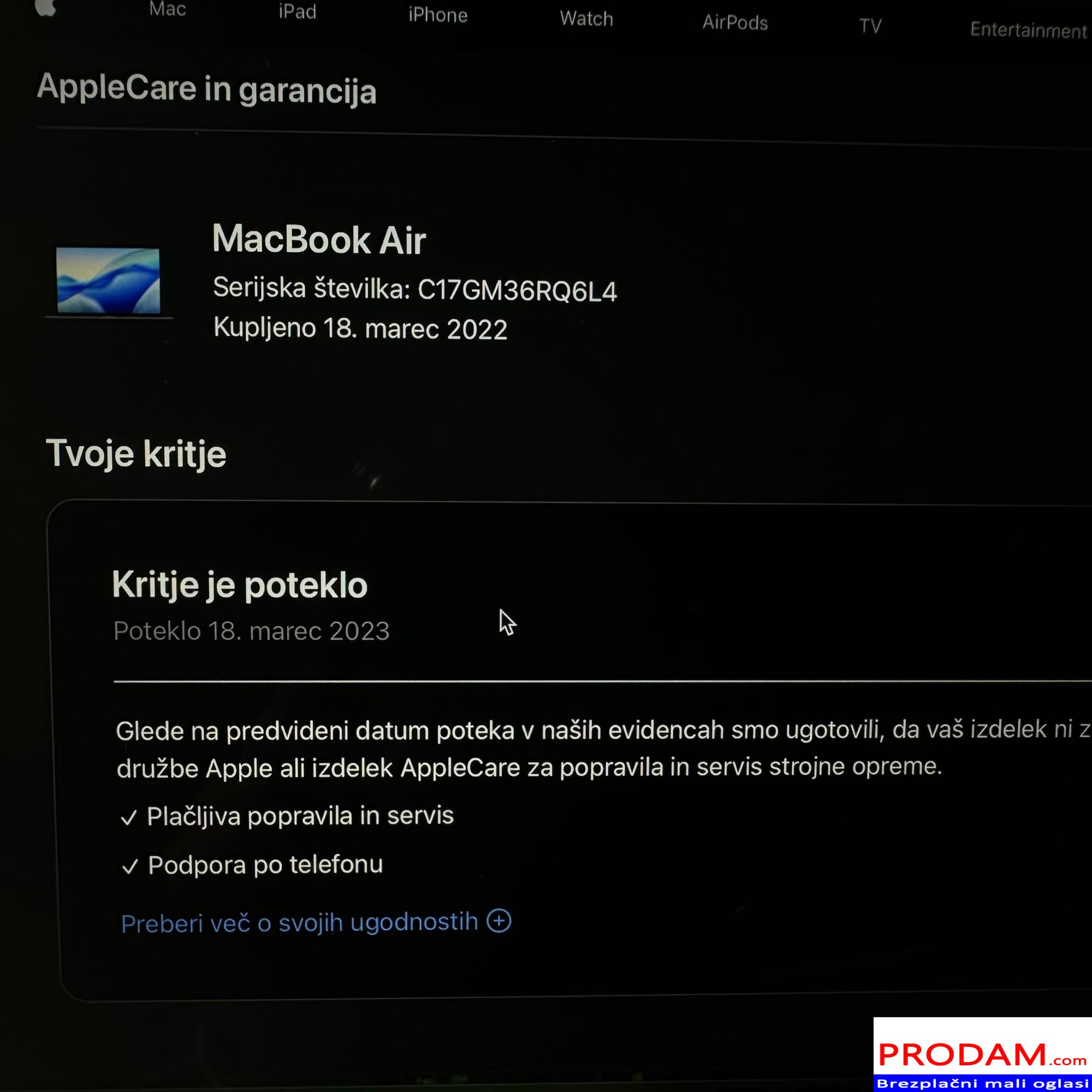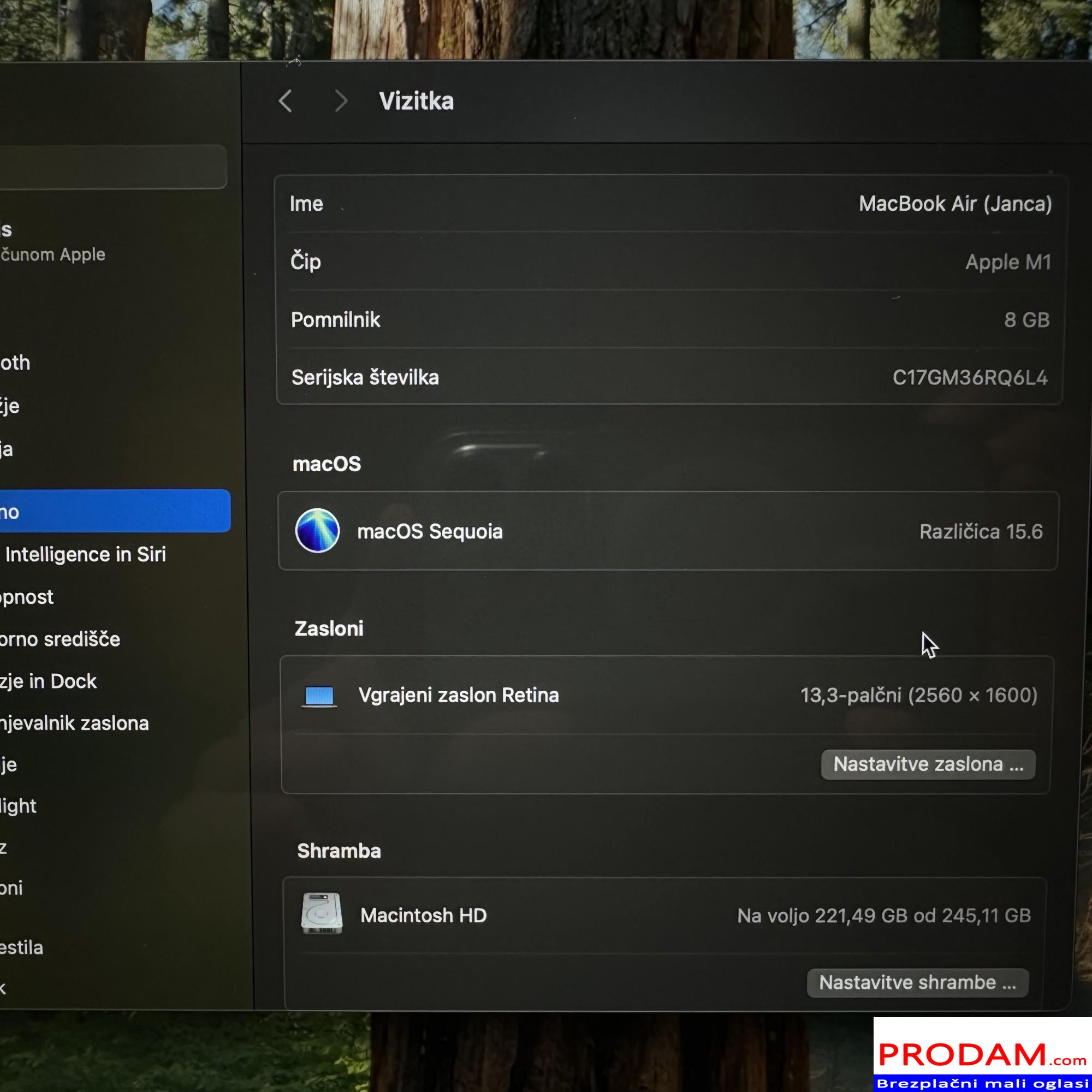 Prodam MacBook Air 13” z Apple M1 čipom (8 GB RAM / 256 GB SSD), kupljen marca 2022. Prenosnik je zelo lepo ohranjen, tehnično brezhiben in deluje hitro, tiho ter zanesljivo – idealen za vsakodnevno delo, študij ali domačo uporabo.
