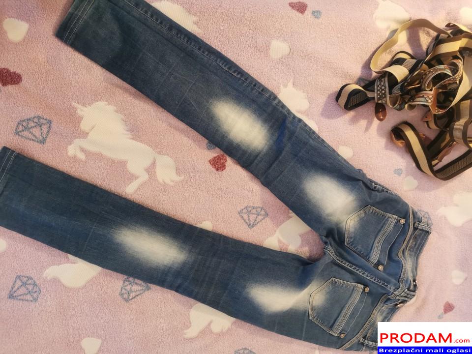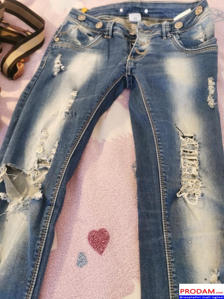 Kavbojke za ženske, najstnice. Številka piše M, sama nosim S. Izredno elastične, naredijo lepo postavo. Kupljene nove. Kavbojke se lahjo nosijo z naramnicami ali brez. Dodam še dvoje, zraven. Ene nošene več, kot druge. Pri kavbojkah ne vidim napak, razen ene perlice ni več.