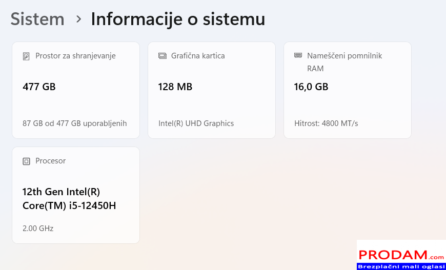 Gre za zmogljivo konfiguracijo z Intel i5 procesorjem 12. generacije in 16 GB RAM-a, kar pomeni tekoče delo brez zatikanja – primeren za študij, pisarniško delo, multitasking, programiranje in vsakodnevno uporabo.