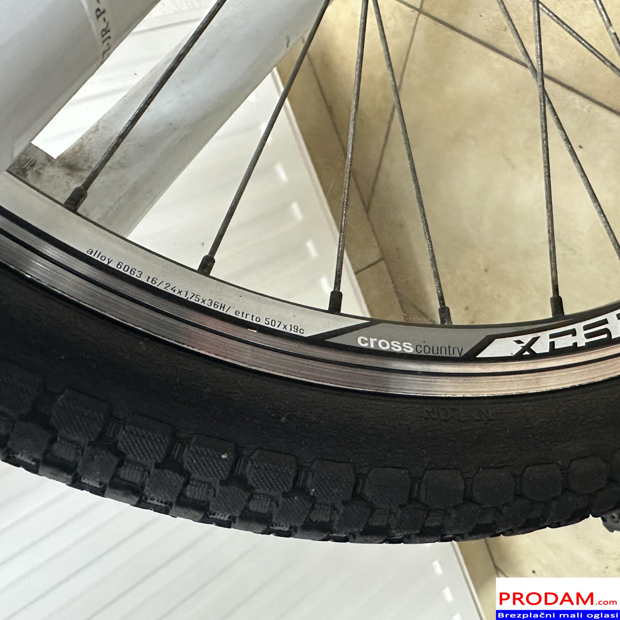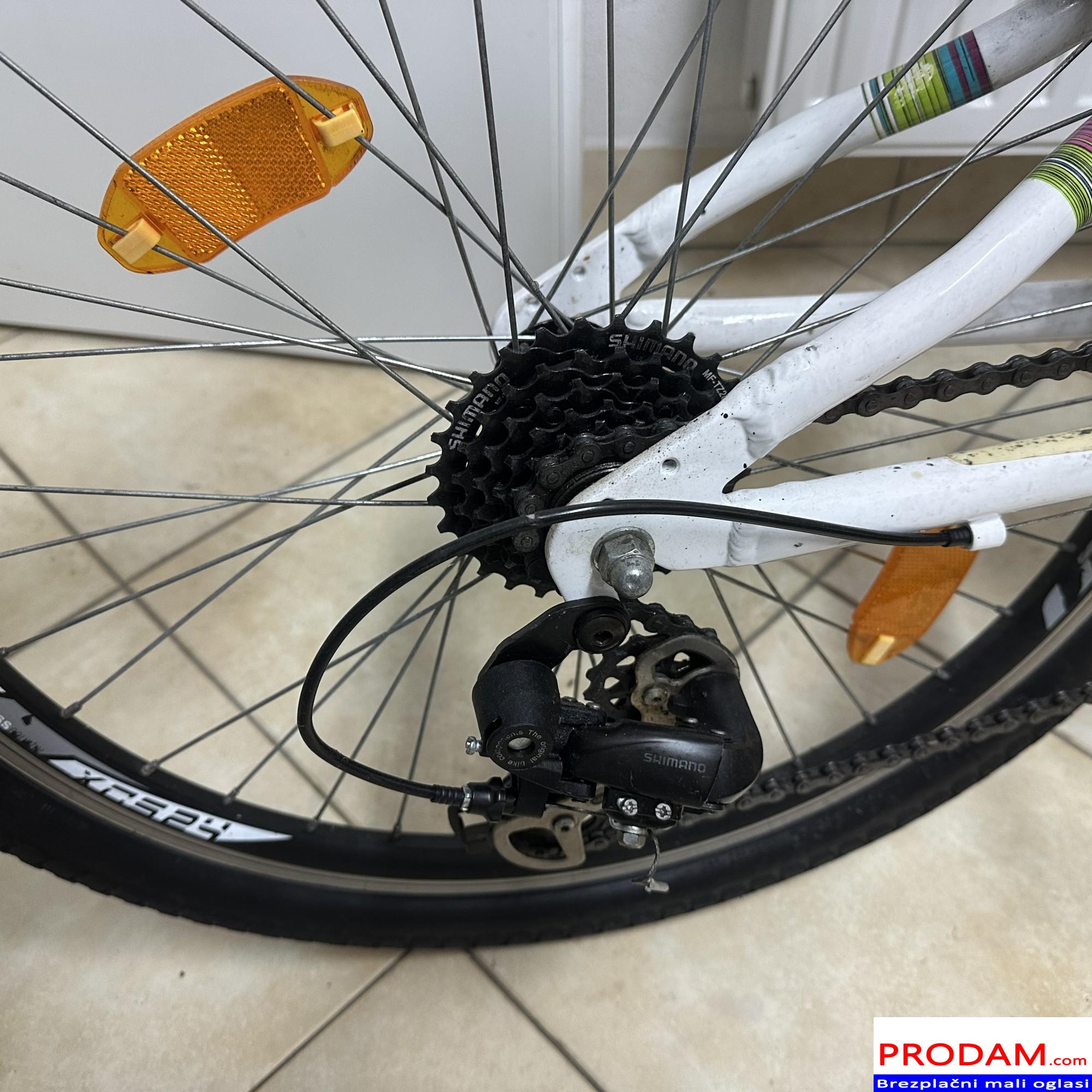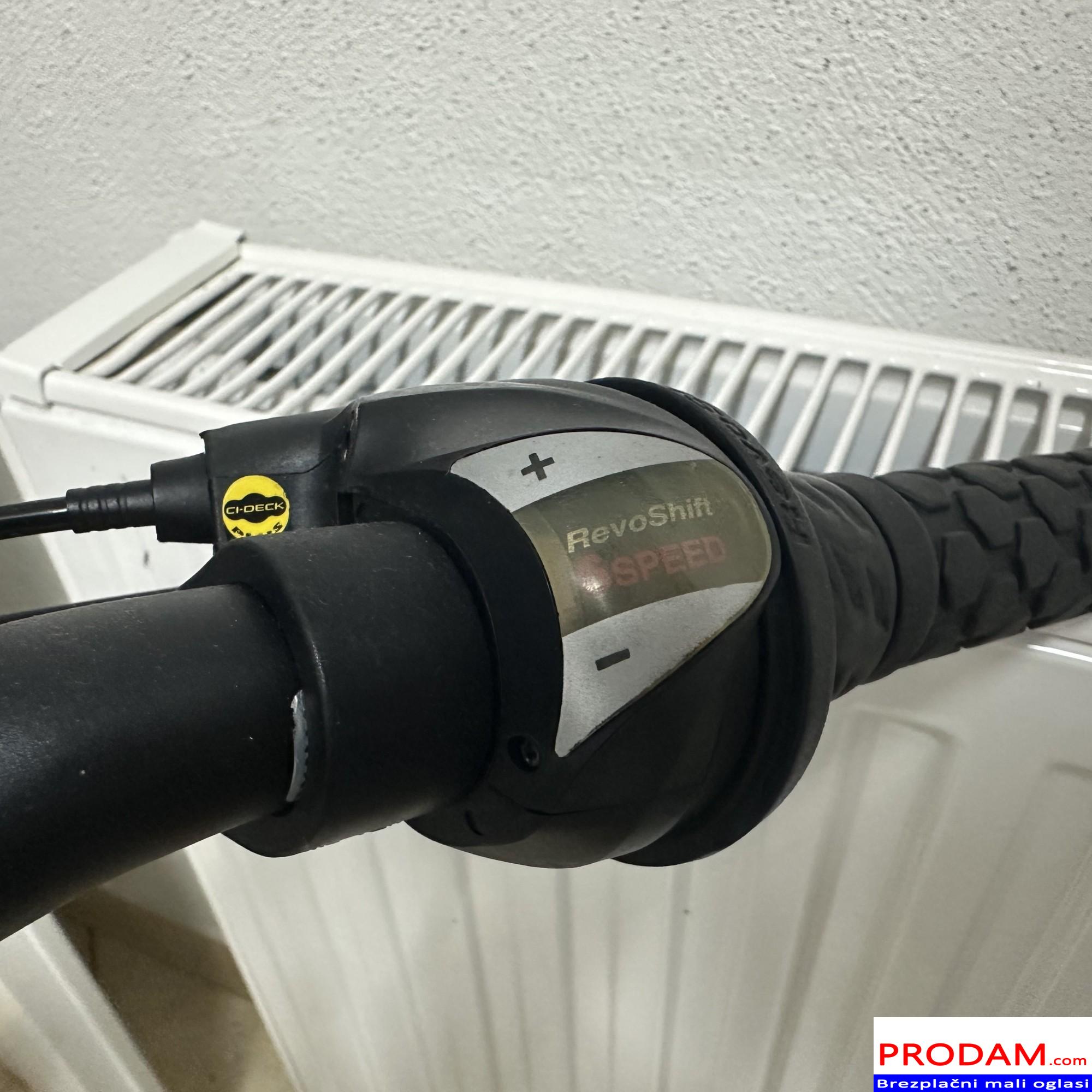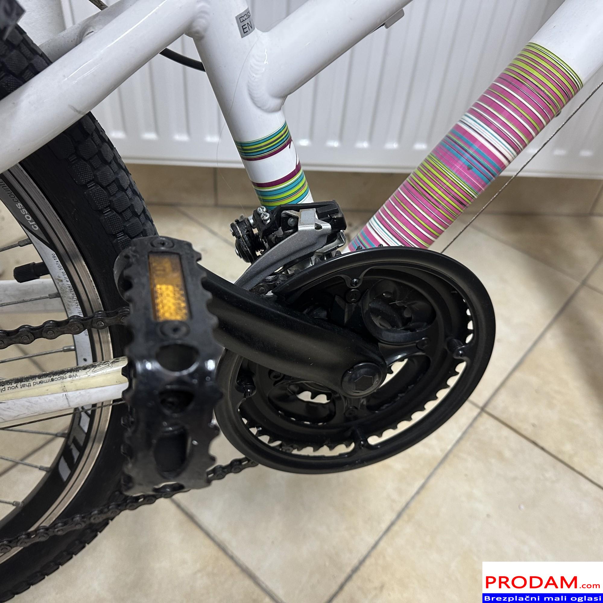 Prodam lepo ohranjeno otroško kolo velikosti 24″, primerno za otroke približno 8–11 let (višina cca 115–145 cm). Kolo ima 18 prestav (Shimano) z RevoShift prestavno ročico, kar omogoča enostavno in zanesljivo prestavljanje. Sprednje vzmetenje poskrbi za udobno vožnjo tudi po slabših podlagah. Kolo je tehnično brezhibno – prestave in zavore delujejo pravilno, okvir je raven, gume in obroči so v dobrem stanju. Primerno za vsakodnevno uporabo, vožnjo v šolo ali rekreativne izlete.