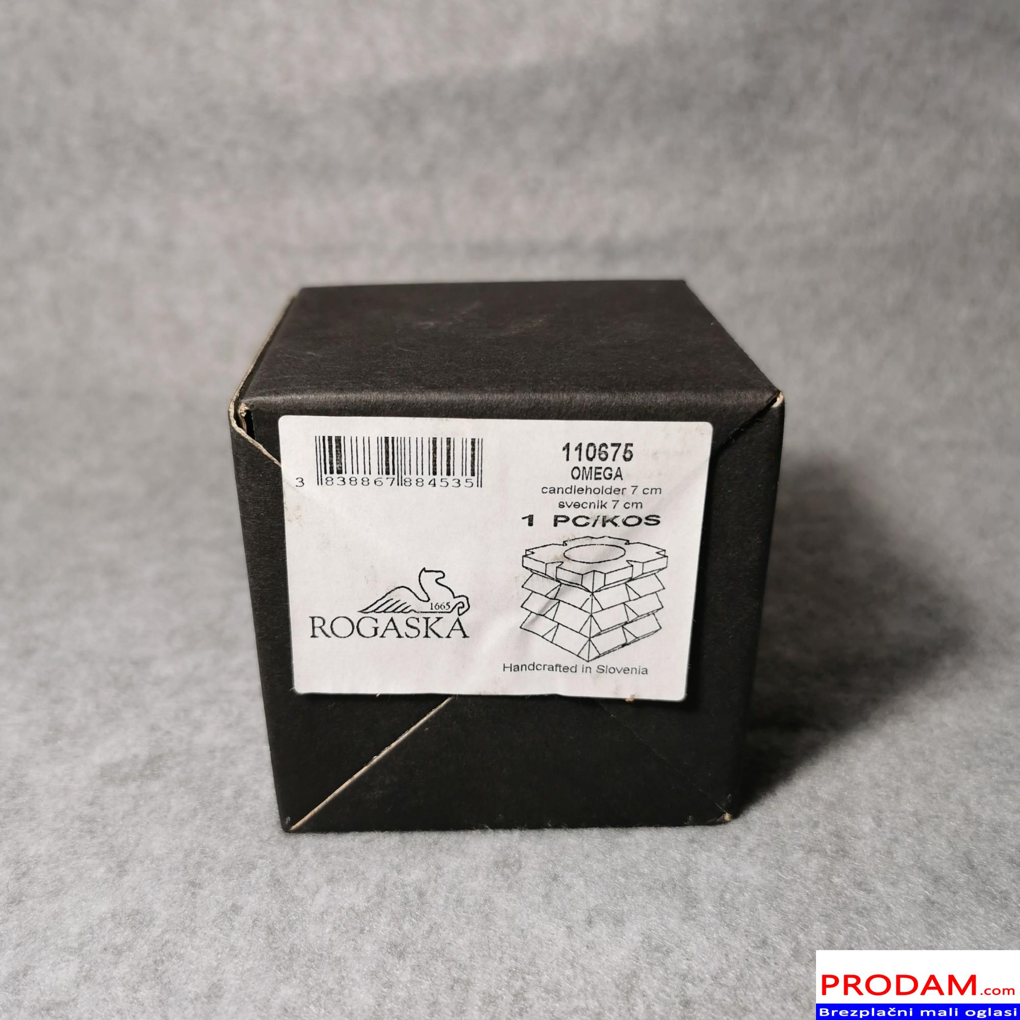 ROGAŠKA KRISTALNI SVEČNIK OMEGA – NOV, V ŠKATLI