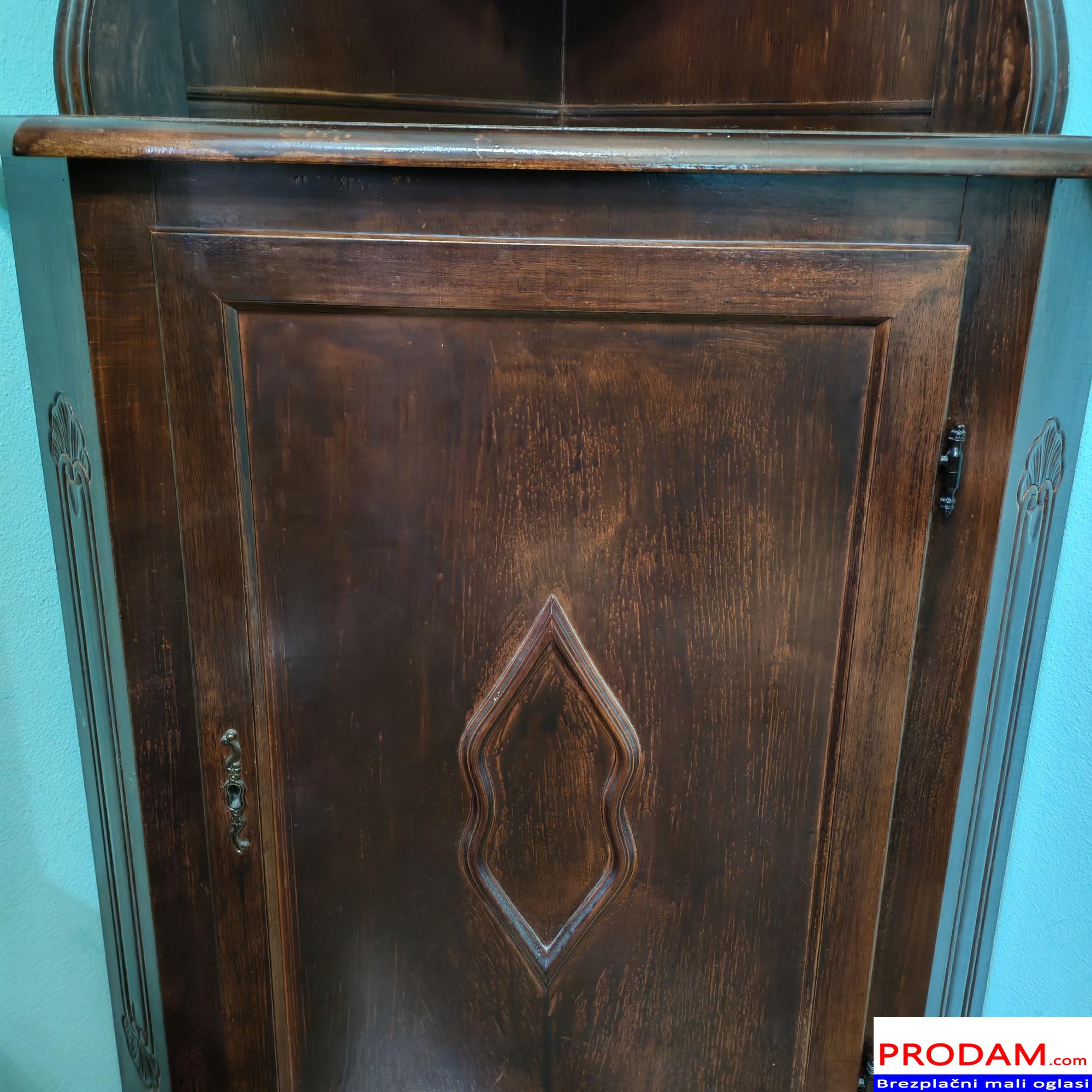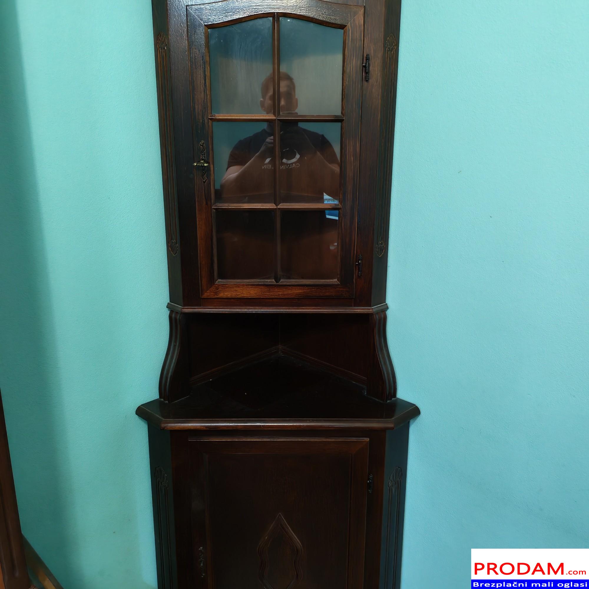 STARINSKA KOTNA VITRINA IZ MASIVNEGA LESA KLASIČEN SLOG ( 1950-1970)